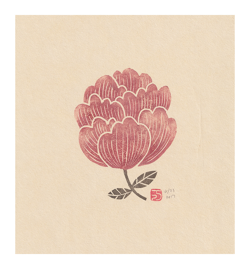 Mariko Jesse X Pink Peony 2017 10 x10” Mokuhanga