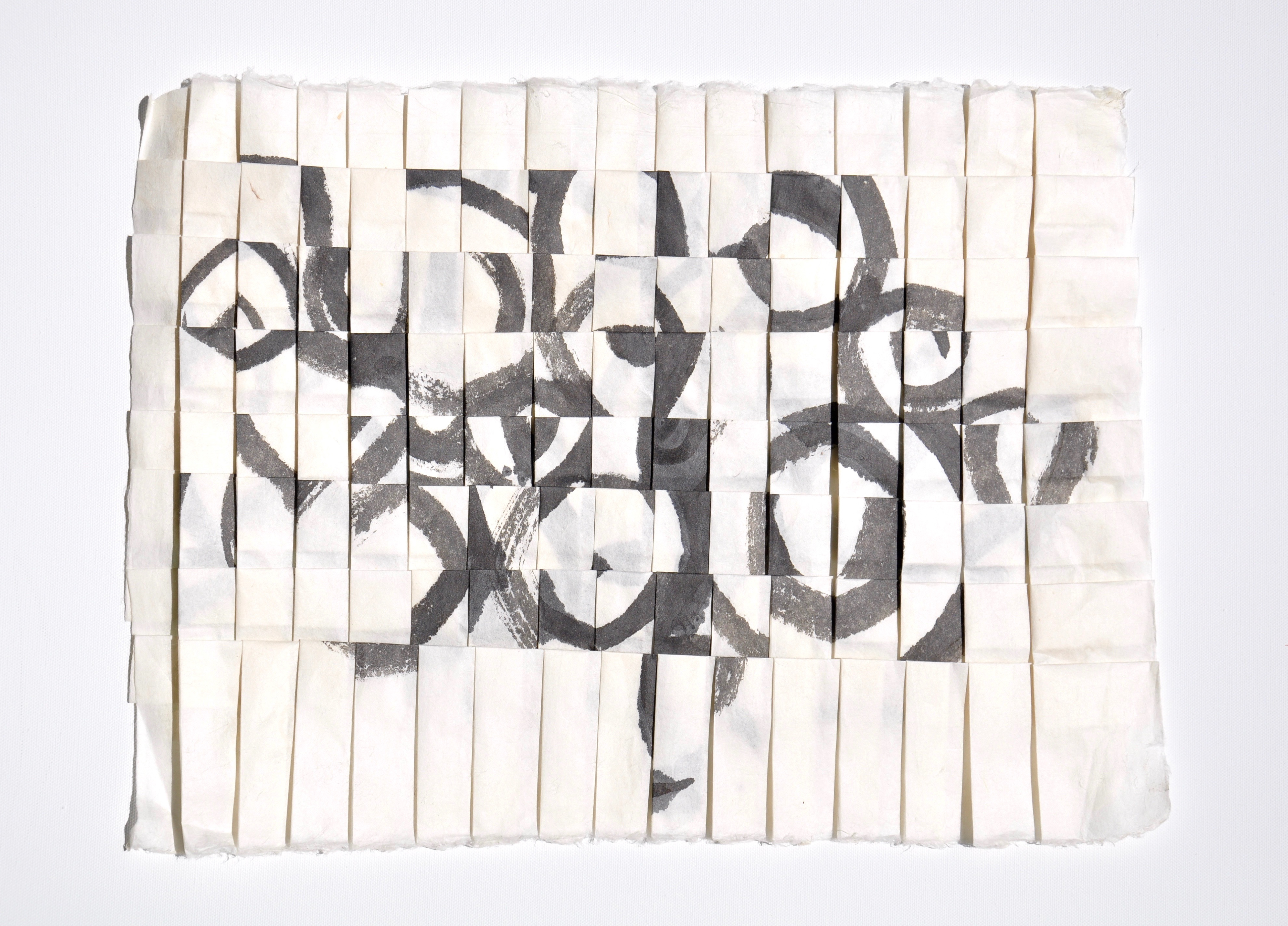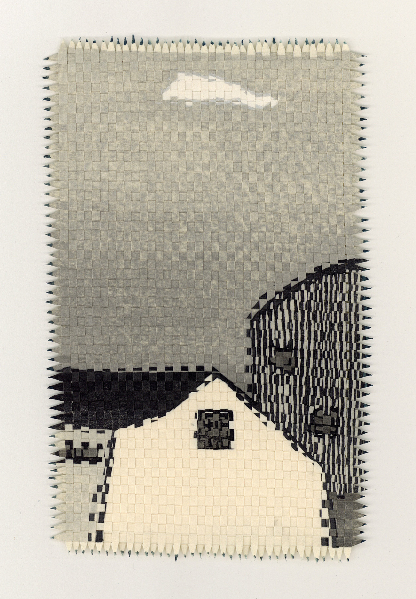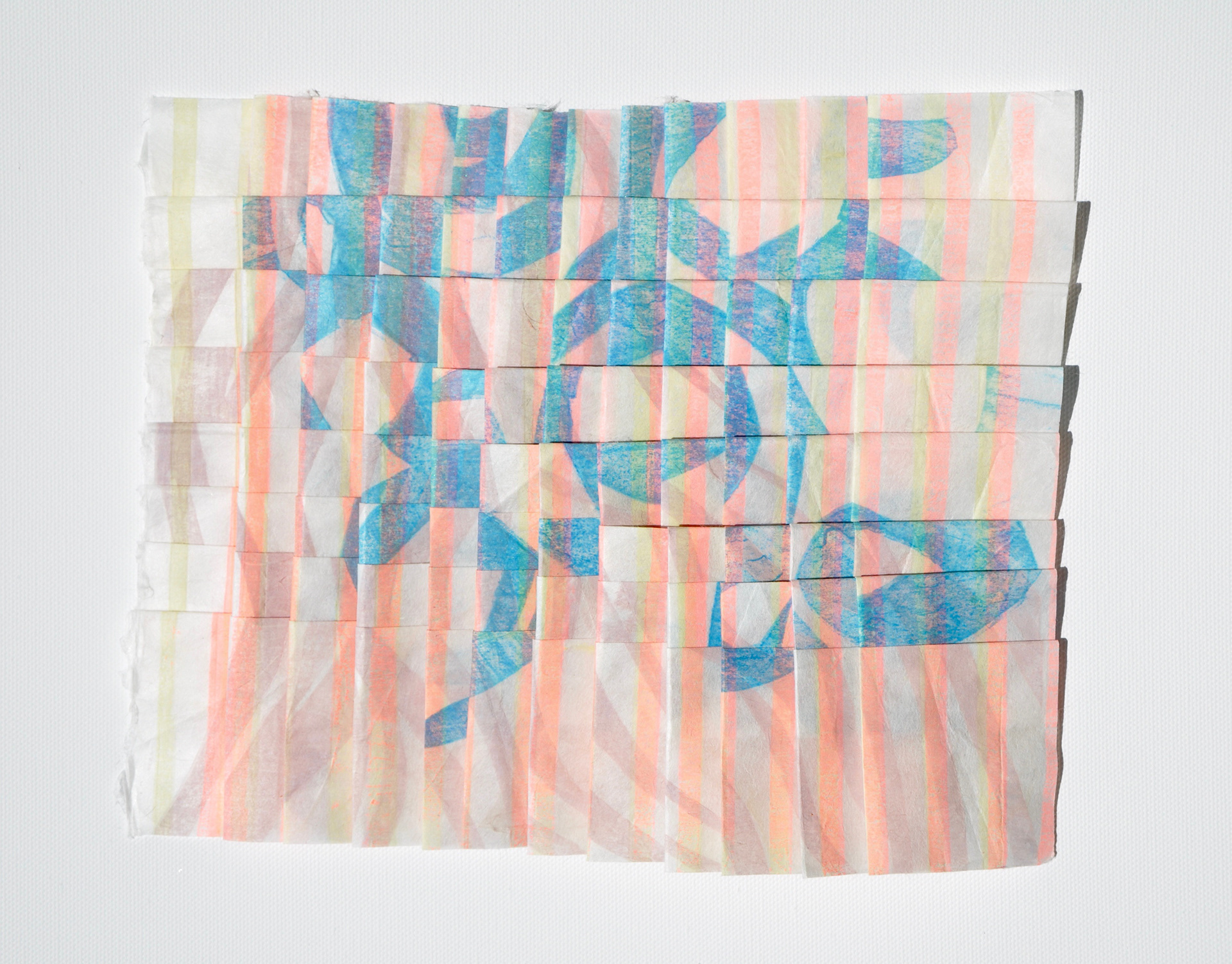Katie Baldwin Raft (neighborhood) #3 6 x 12" Mokuhanga and woven