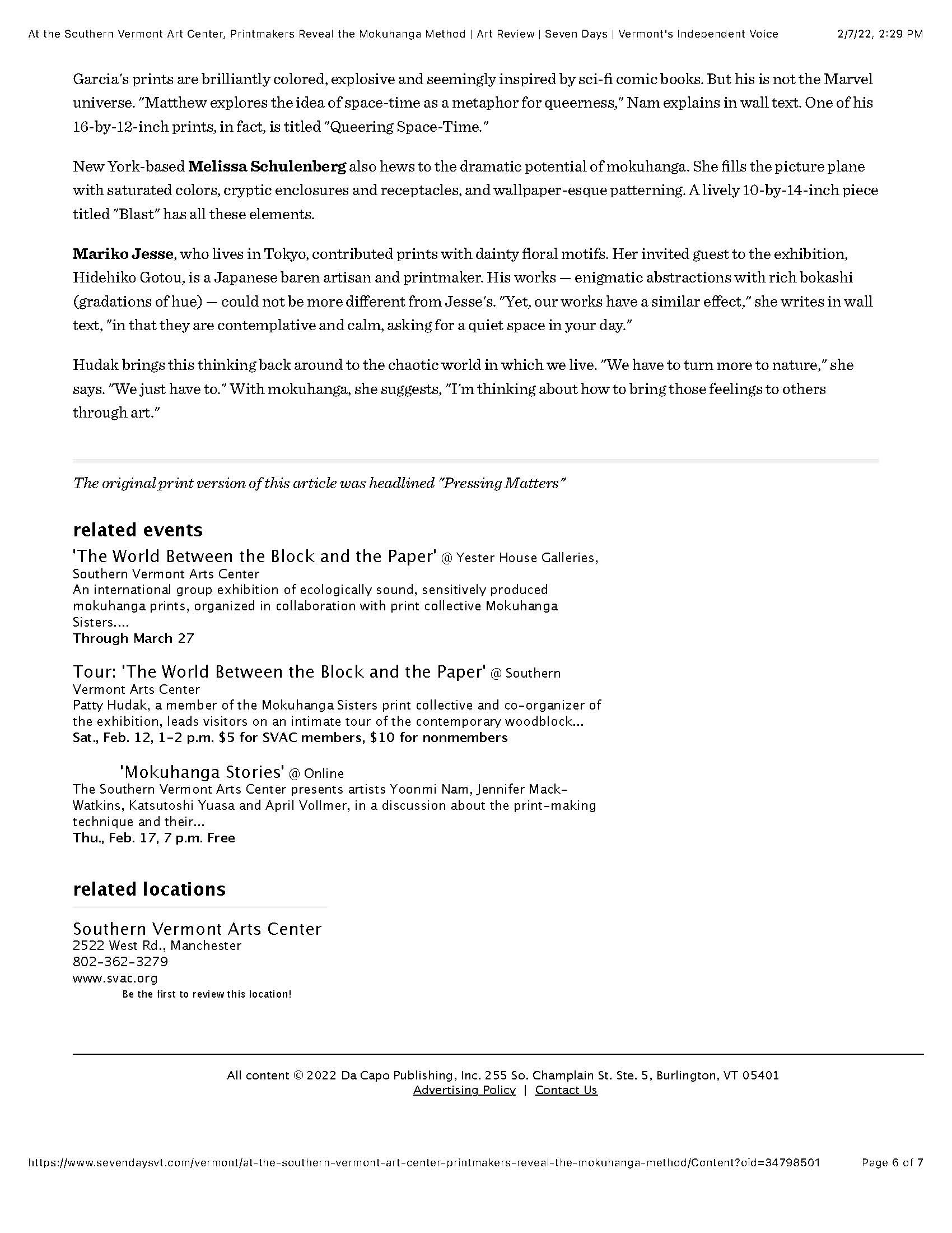 Mokuhanga Sisters at Southern Vermont Arts Center, in Manchester VT