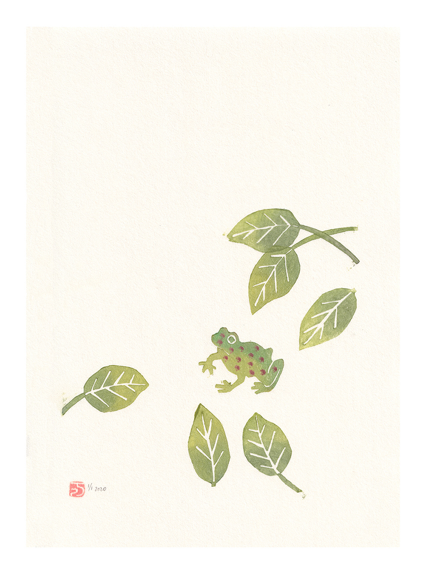 Mariko Jesse X Spotty Frog 2020 7.5" x 11.5" Mokuhanga
