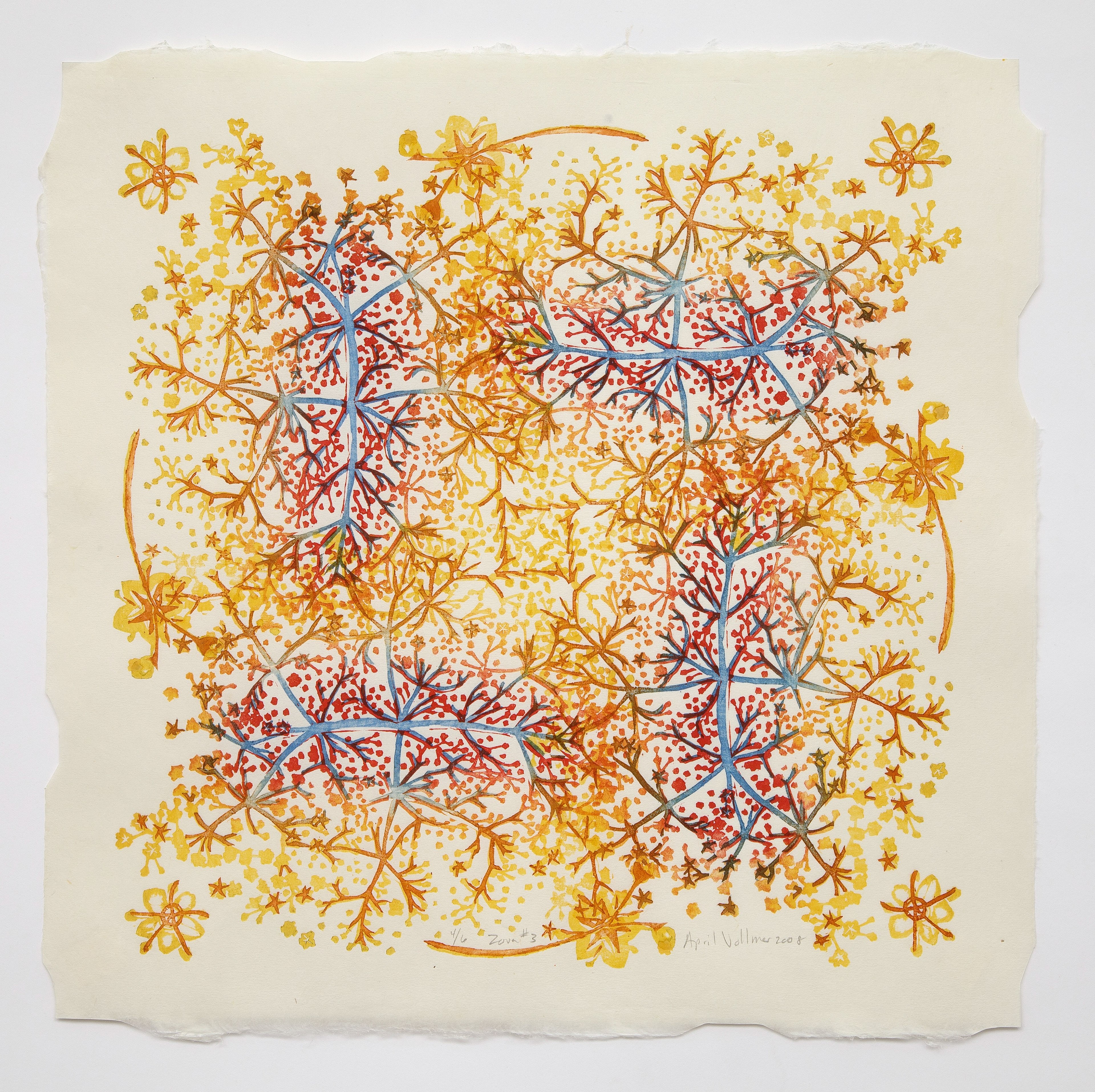 April Vollmer 5 Zova gold 2008 18 x 18” mokuhanga