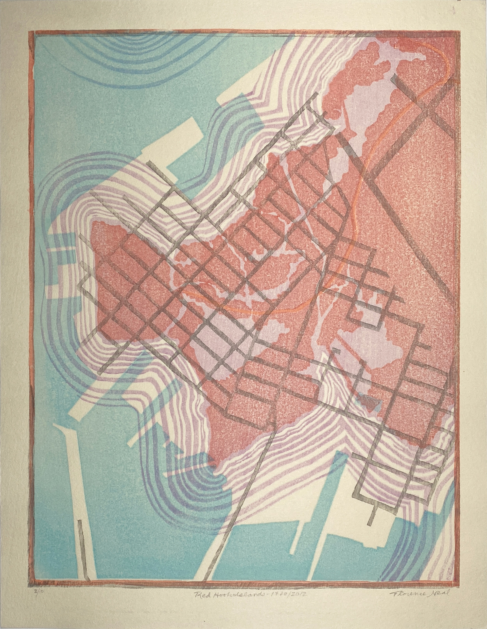 Florence Neal Red Hook Islands 1770/2012 14 1/8 x 10 7/8" mokuhanga
