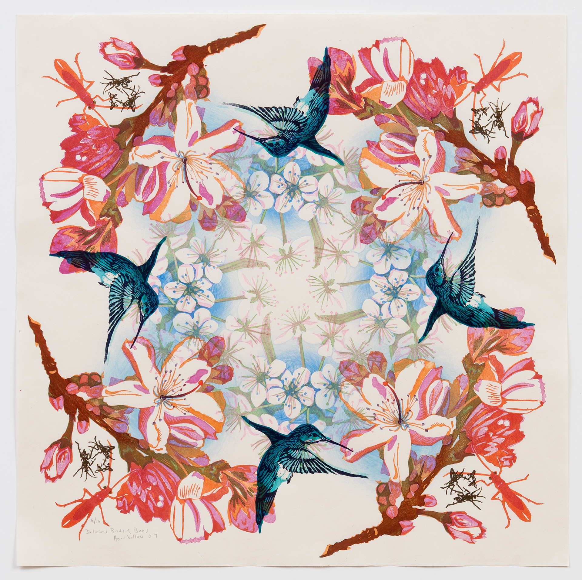 April Vollmer 2 Delirous Birds 2007 26 x 26” mokuhanga