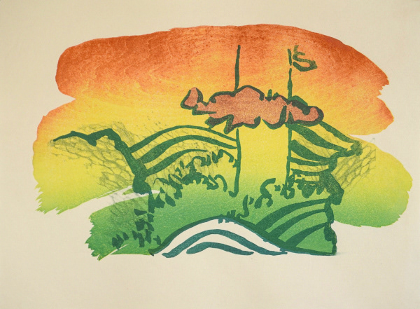 Mia O Green Field 1 2021 7.6 x 10.4" mokuhanga