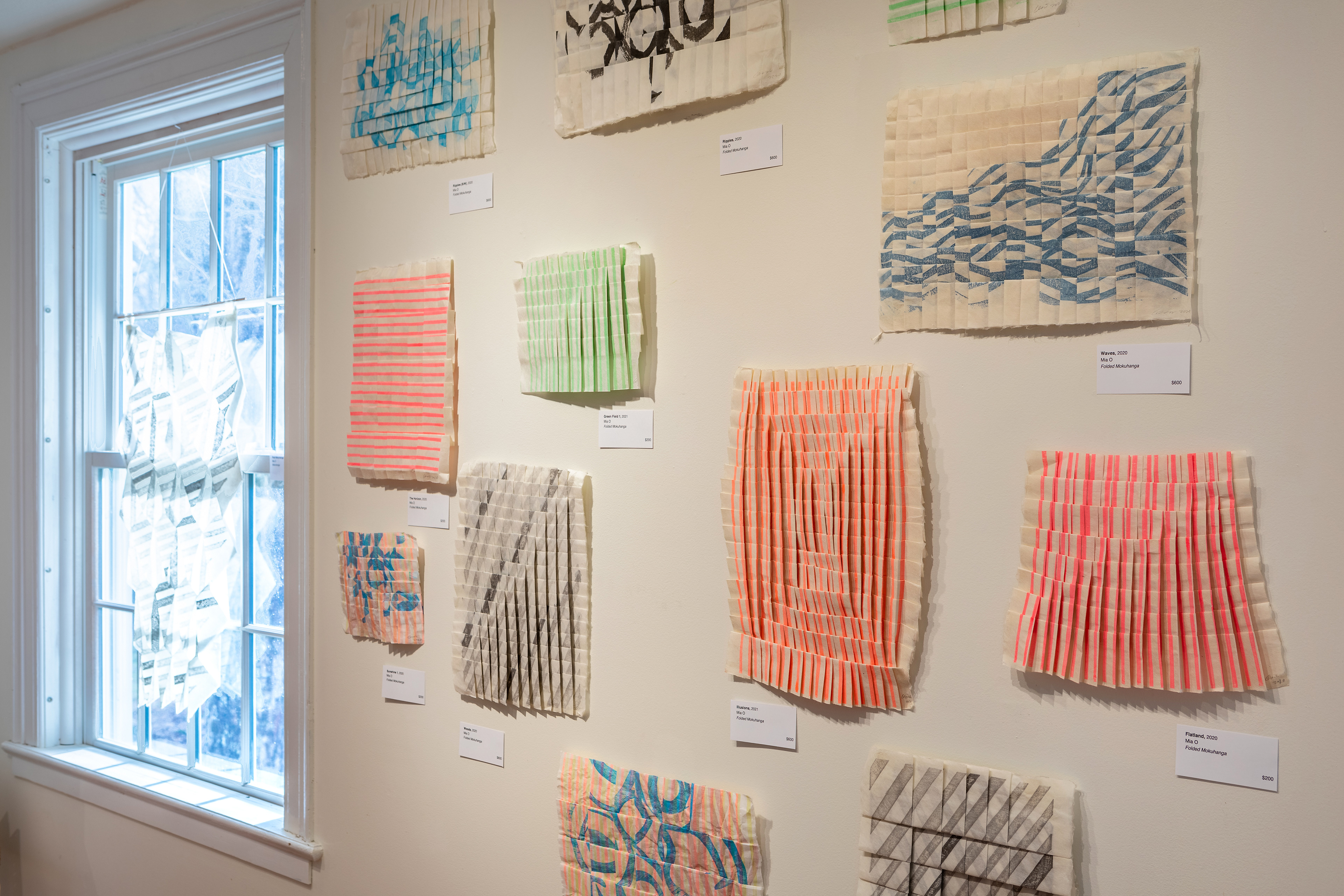 Mia O Ripples 2020 10.6 x 14.3" mokuhangaMia O Flatland 2020 11.8 x 10.2" mokuhangaMia O Waves 2020 15.3 x 11" mokuhangaMia O Green Field 2 2021 10 x 8.8" mokuhangaMia O Sunshine 1 2020 6.6 x 8.2" mokuhangaMia O Illusions 2021 15.7 x 11.8" mokuhangaMia O Sunshine 2 2020 13.3 x 10." mokuhanga6Mia O Ripples B/W 2020 10.8 x 16.1" mokuhangaMia O and Terry McKenna Installation View